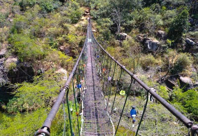 The Kitengela Glass Bridge, one of Kenya’s most thrilling and iconic attractions, is located in Ongata Rongai, Kajiado County, rather than in Kitengela as the name might suggest. Suspended 100 meters above a deep river valley, this swaying bridge connects Kitengela Glass to the Masai Lodge, offering an adrenaline-filled experience for those who dare to cross. With its unique design, featuring wire and glass with large gaps in the railing, the bridge is certainly not for the faint of heart.